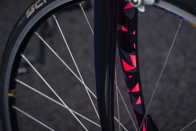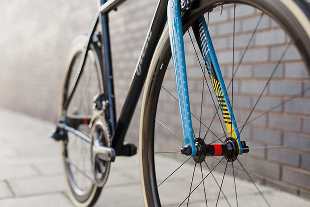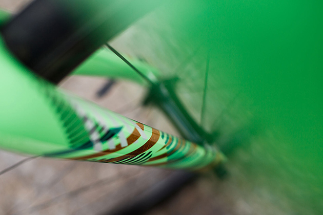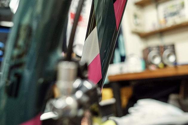 John set to work on masking and layering Tom’s design onto the frame, a task I didn’t envy given the relatively complex elements that parts of my design entailed, and, a few weeks later, the final frame and forks was ready to make their way to me in Tokyo.